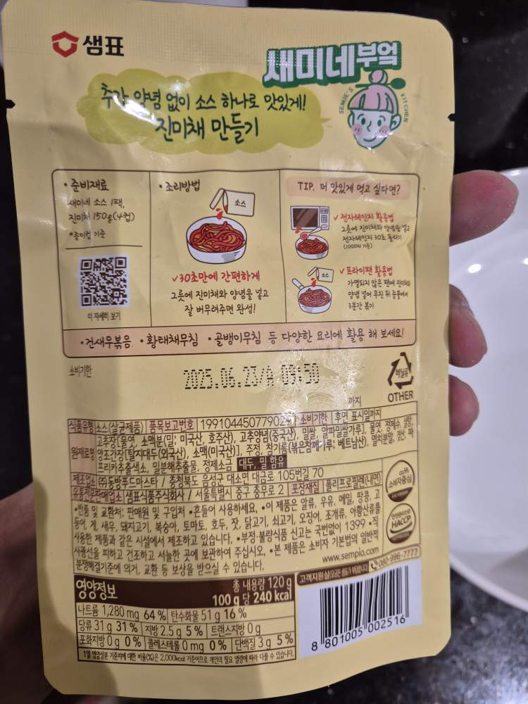 잘 아시겠지만 진미채는 유통기한도 긴 편이기 때문에 해외에서 활용하기 편리하다. (24년 9월구매 -> 유통기한 25년 6월)