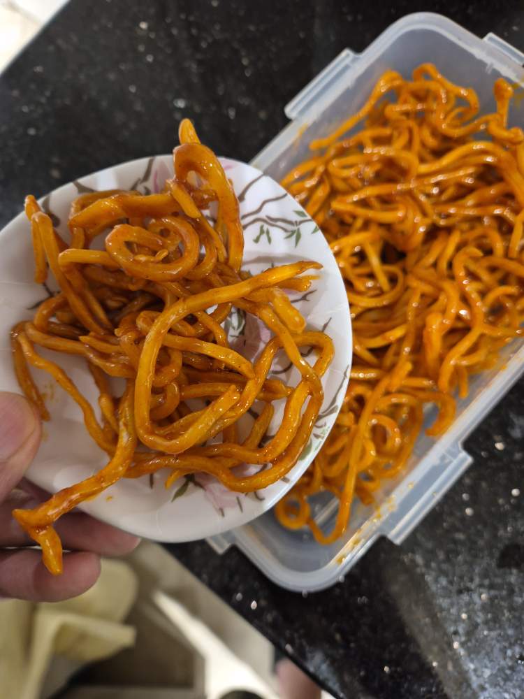 내가 산 진미채는 진공포장된 제품으로 600G이 들어있었다. 600G이면 감이 잘 안오실 수 있는데, 위 사진은 600g의 절반을 락앤락 중대형에 담은 사진이다. 거의 개인적인 경험으론 10끼는 더 먹는것 같다. 가위로 적당히 잘라서 양념이랑 잘 비벼주면 조리 끝이다.