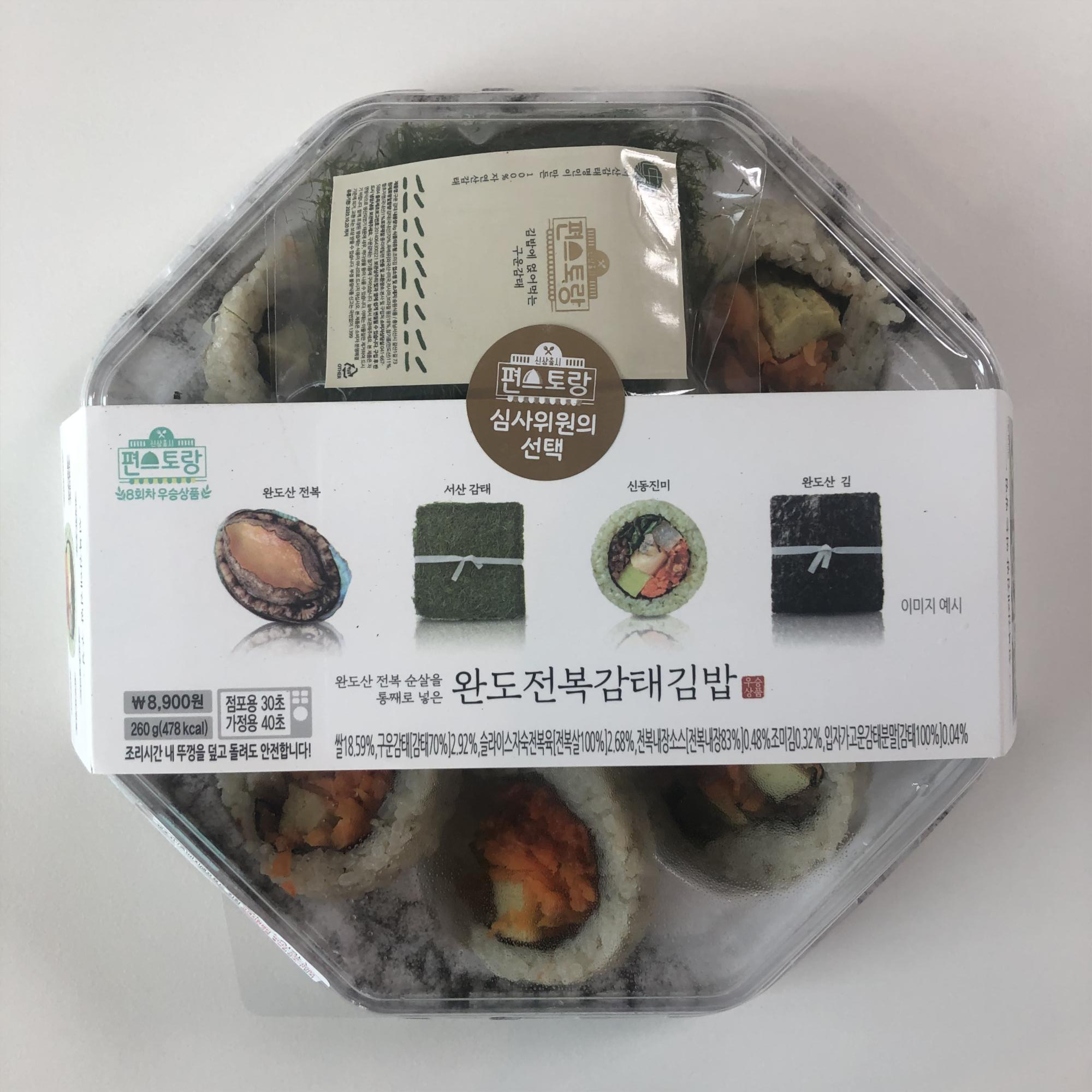 이번에 완도전복감태 김밥 이 메인 출시메뉴고 소라감태마요 김밥 이라는 서브메뉴도 함께 출시된듯 합니다.