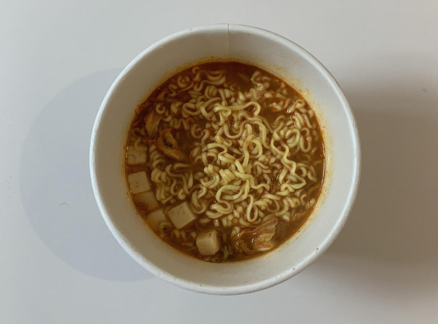 뚜껑은 마치 찌개에 라면이 있는듯한 느낌을 줍니다. 저는 동네 마트에서 구매했습니다. 아마 편의점에도 잘 찾아보시면 구매하실 수 있을 것 같습니다.