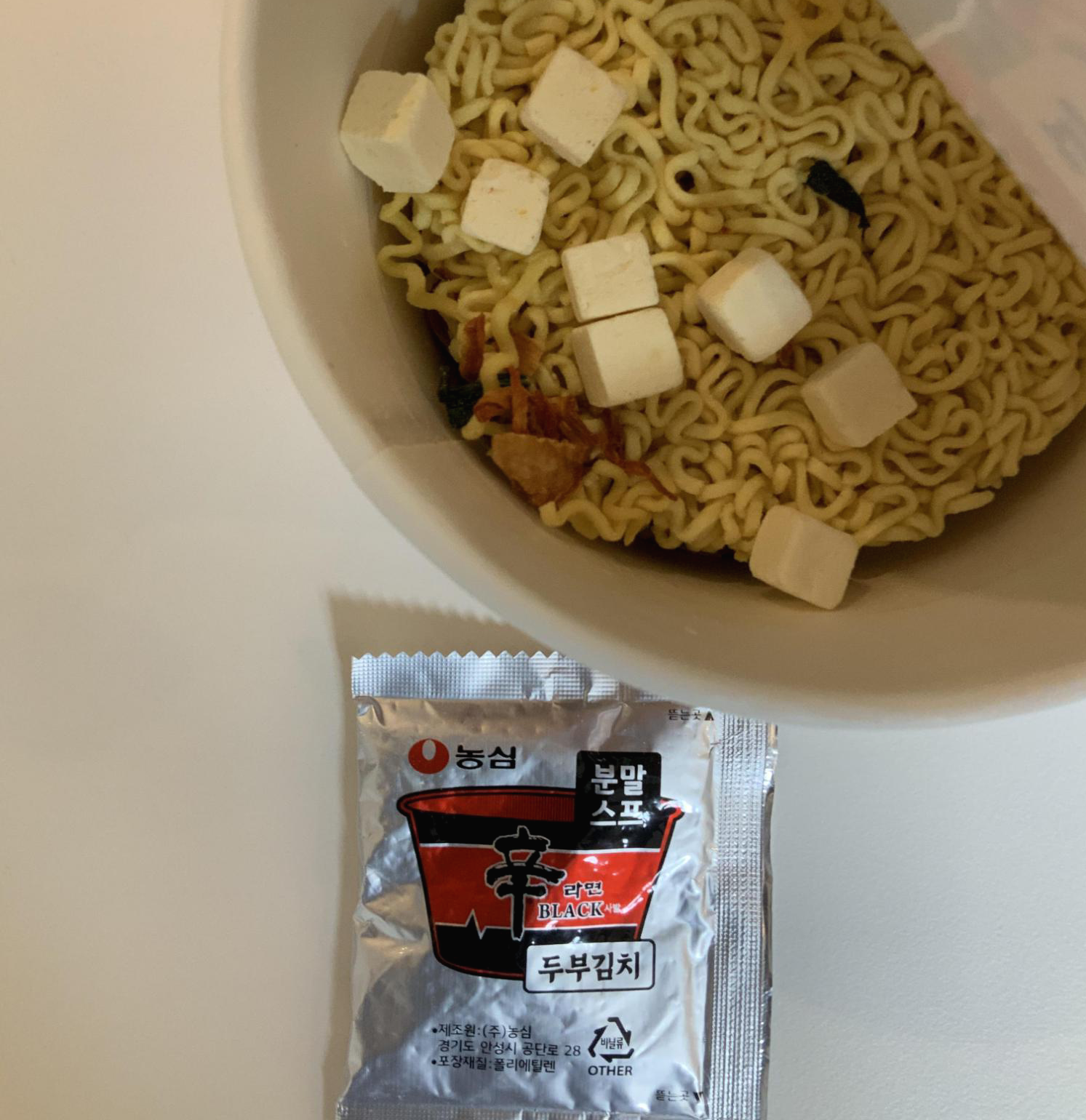 오늘은 신라면블랙 두부김치 버전을 먹어보았습니다. 마침 마파두부가 저녁 메뉴였는데 같이 먹게되었습니다. 두부파티를 했네요.