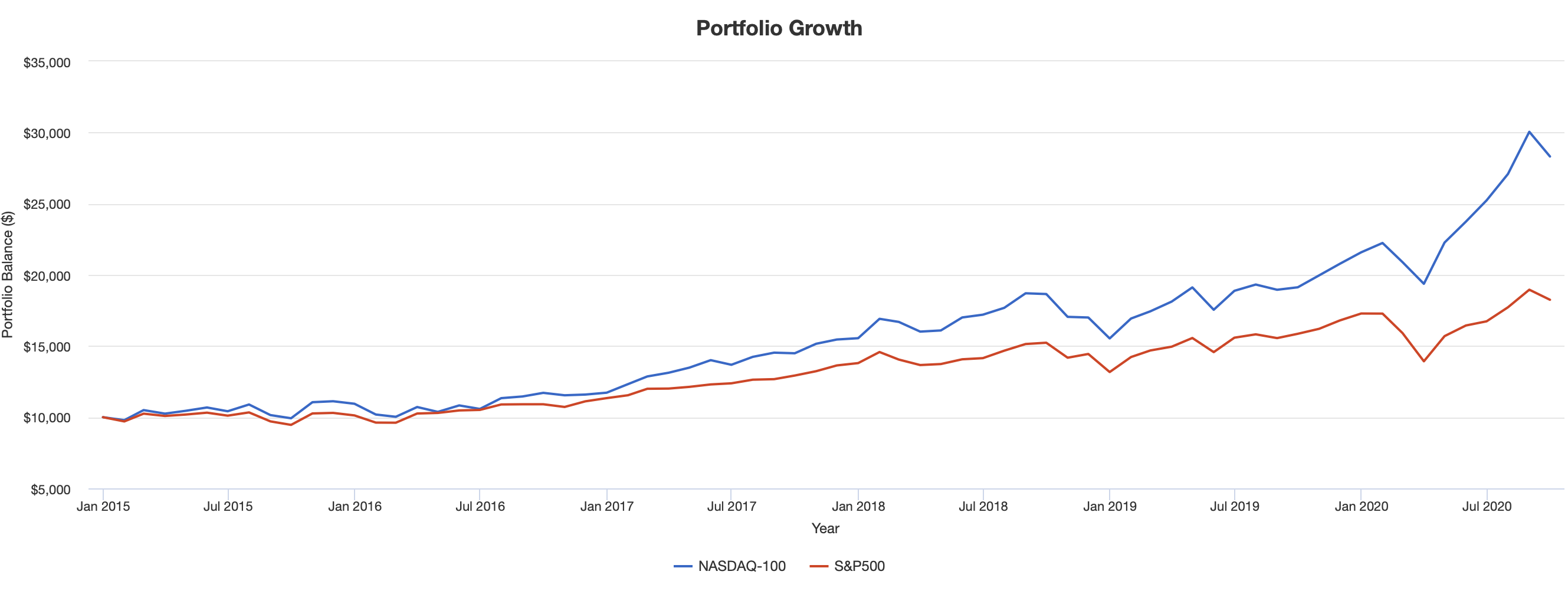 최근 몇년간 미국 기술주의 강세인 시장이 이어지고 있습니다. NASDAQ이 최고의 상승률을 보이고 있습니다.