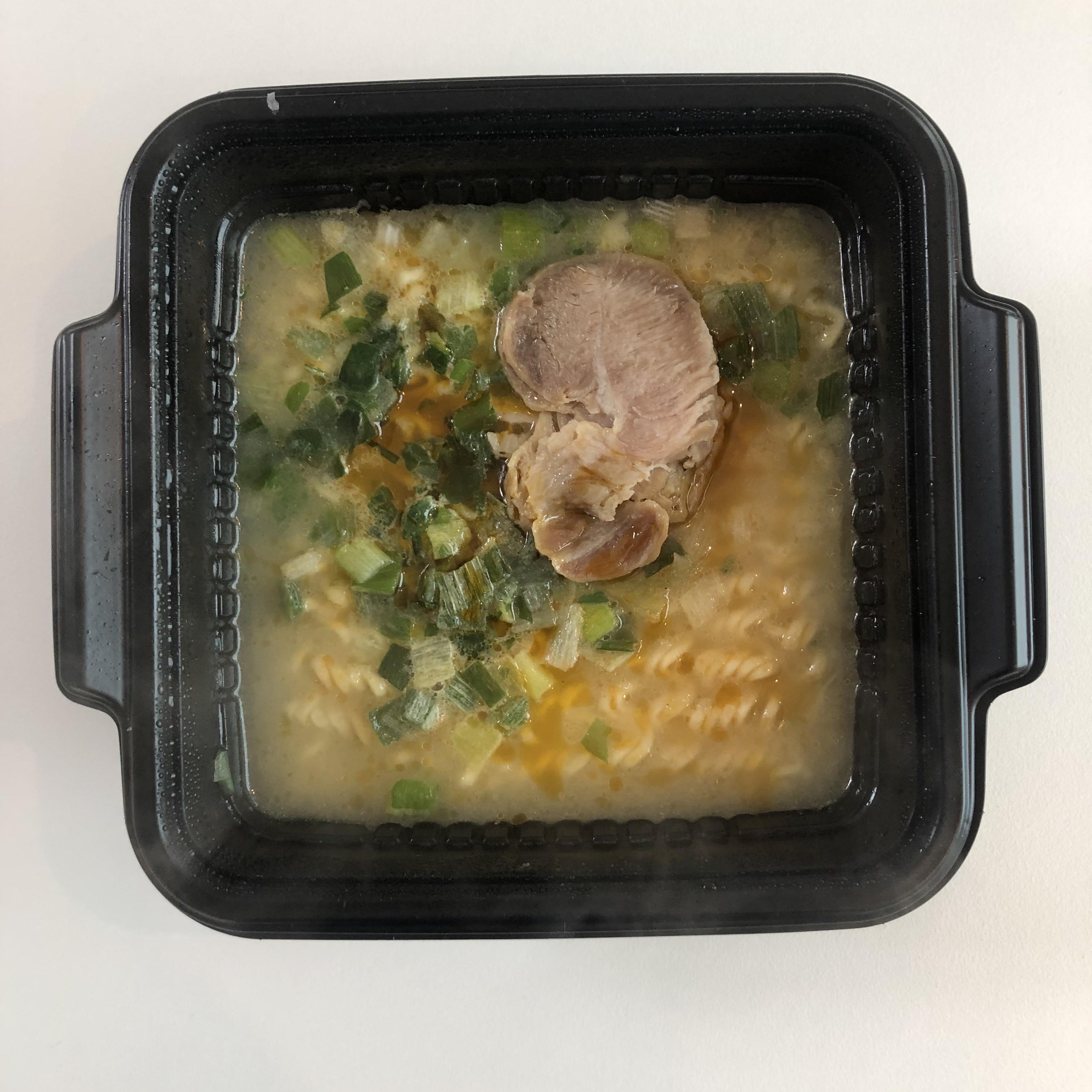 용기에 라면사리, 분말스프, 동결건조파, 돼지고기 토핑을 넣고 뜨거운물을 표기선까지 부어주시면 됩니다. 뭐 다른 컵라면들과 비슷하죠?