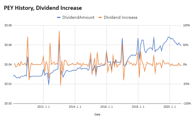 PEY가 월배당 시스템으로 운용되고 있고 3.85%의 배당금을 지급하고 있습니다. 아무래도 배당 받는 입장에선 매달 받는 월배당이 기분이 훨씬 좋습니다 :-)