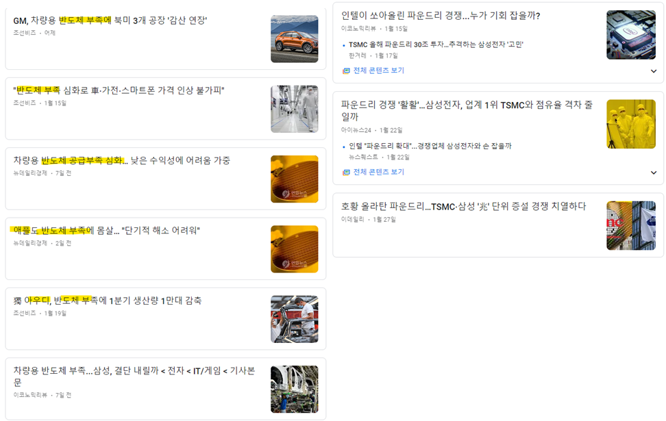 여기저기 반도체가 부족해서 난리네요. 최근 파운드리 또한 TSMC의 압도적인 1위가 계속되고 있지만 삼성전자가 2030년까지 따라잡겠다고 발표를 했었죠? 두 기업 모두 엄청난 설비기술을 가지고 있는 만큼 경쟁이 심화될 것이라 생각됩니다. 최근엔 삼성전자의 파운드리 수주가 계속되고 있어 더 궁금해지네요.