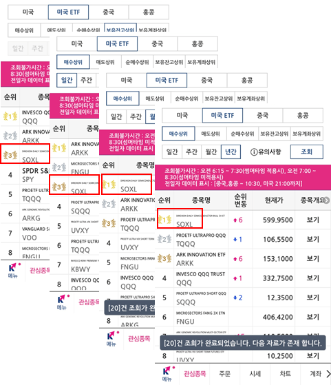 제가 사용하는 증권사인 키움증권의 최근 매수상위 및 보유잔고 상위 ETF입니다.