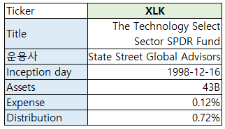 미국 기술주들에 주력하여 투자할 수 있도록 나온 상품이 XLK입니다.