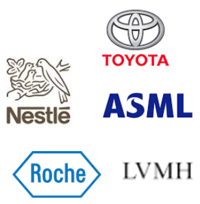 상위 10개 기업들을 살펴보면 그래도 눈에 익은 기업들입니다. 네슬레, ASML, LVMH, 도요타, SAP등이 있습니다. 하지만 비중은 상당히 적은편입니다.