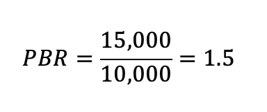 A회사의 주식 1주당 순자산이 10,000원 이고 현재 주식가격이 15,000원 이라고 했을 때 이 회사의 PBR은 1.5가 됩니다.