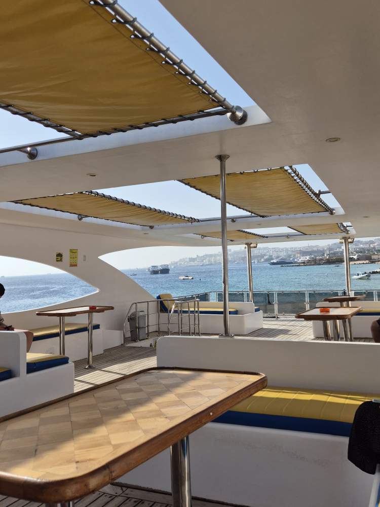 유람선 시설은 1층엔 스노클링, 다이빙 도구들, 화장실, 식당이 있고(작음) 2층엔 저렇게 그늘막과 쉴수 있는 공간이 있었다.